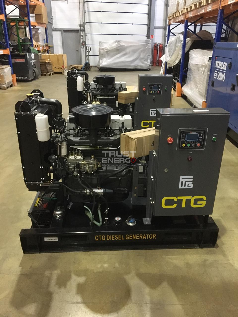 Траст-Энерго выполнила заказ на доставки и пусконаладку двух дизельных генераторов CTG мощностью 25 кВТ, которые планируется использовать как резервный источник электричества в складском помещении непищевого производства города Рыбинск.